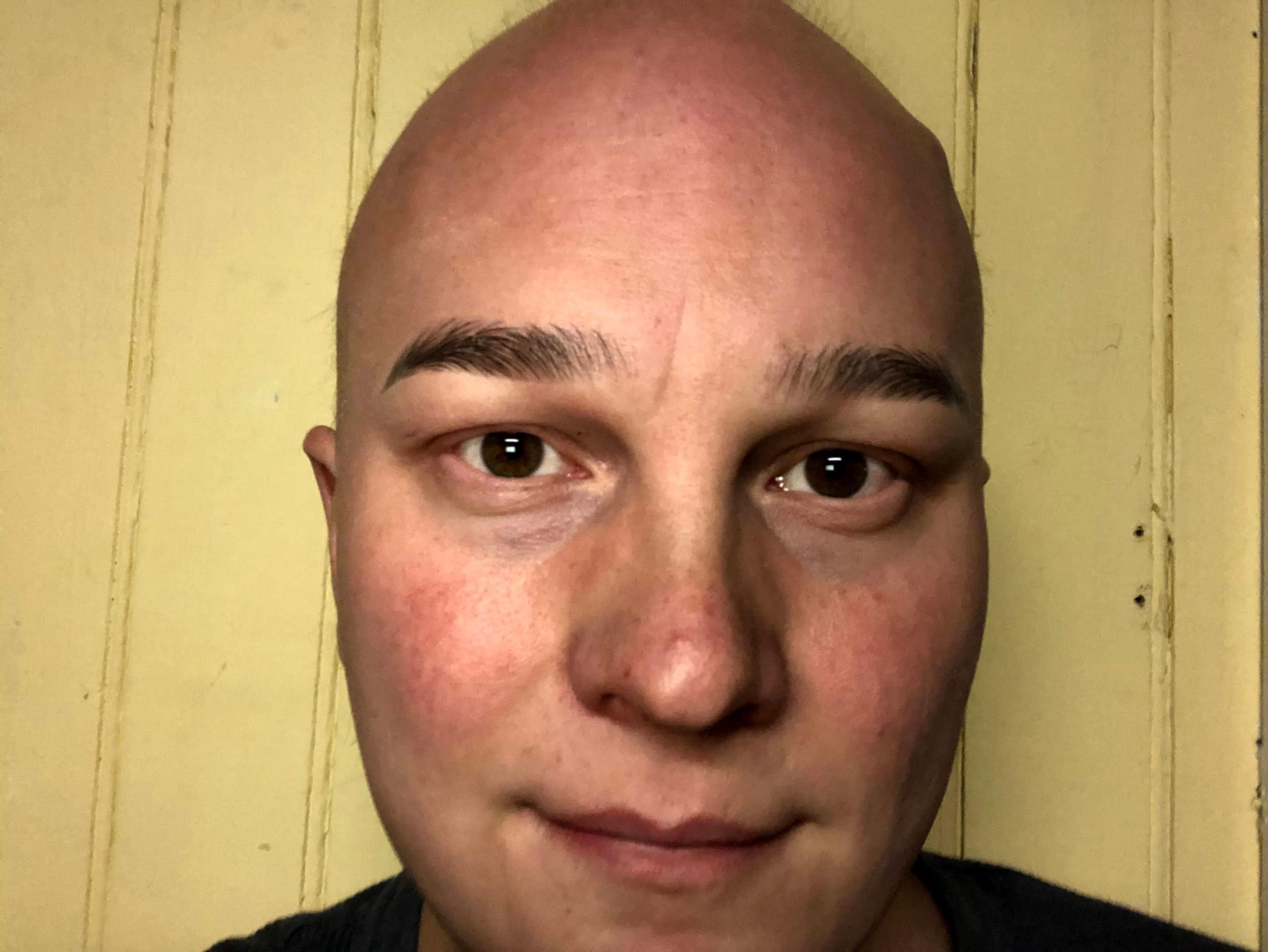 It’s one thing to be bald – it’s another thing to have no eyebrows.