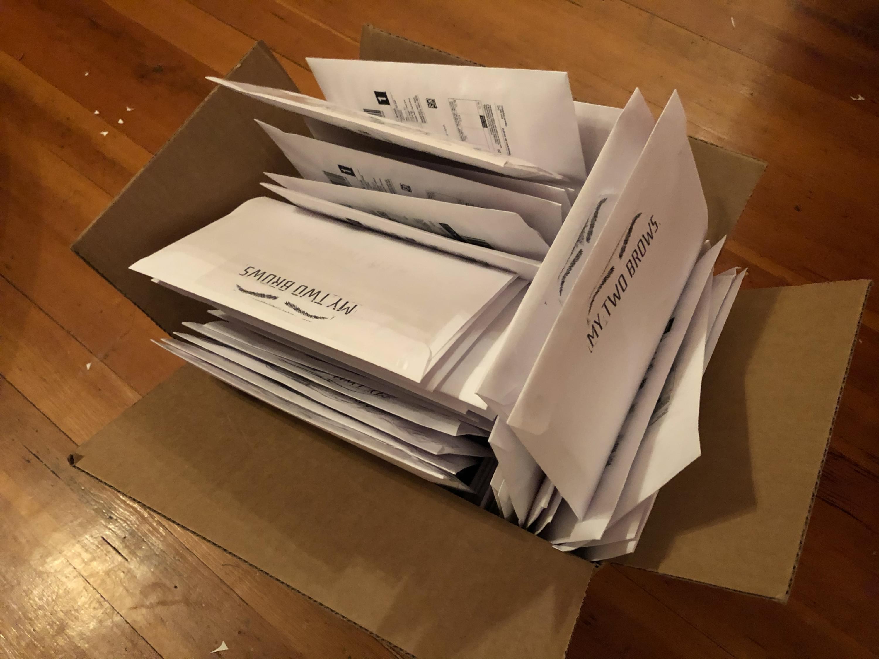 When I first launched the store, I offered free shipping along with the free sample packs, and I spent over $1000 in shipping over 2 weeks. I’d love to keep doing that, but with this crazy demand I’ll go broke. And that $1000 didn’t even include my product costs for the eyebrow sheets and labour for packing the orders.