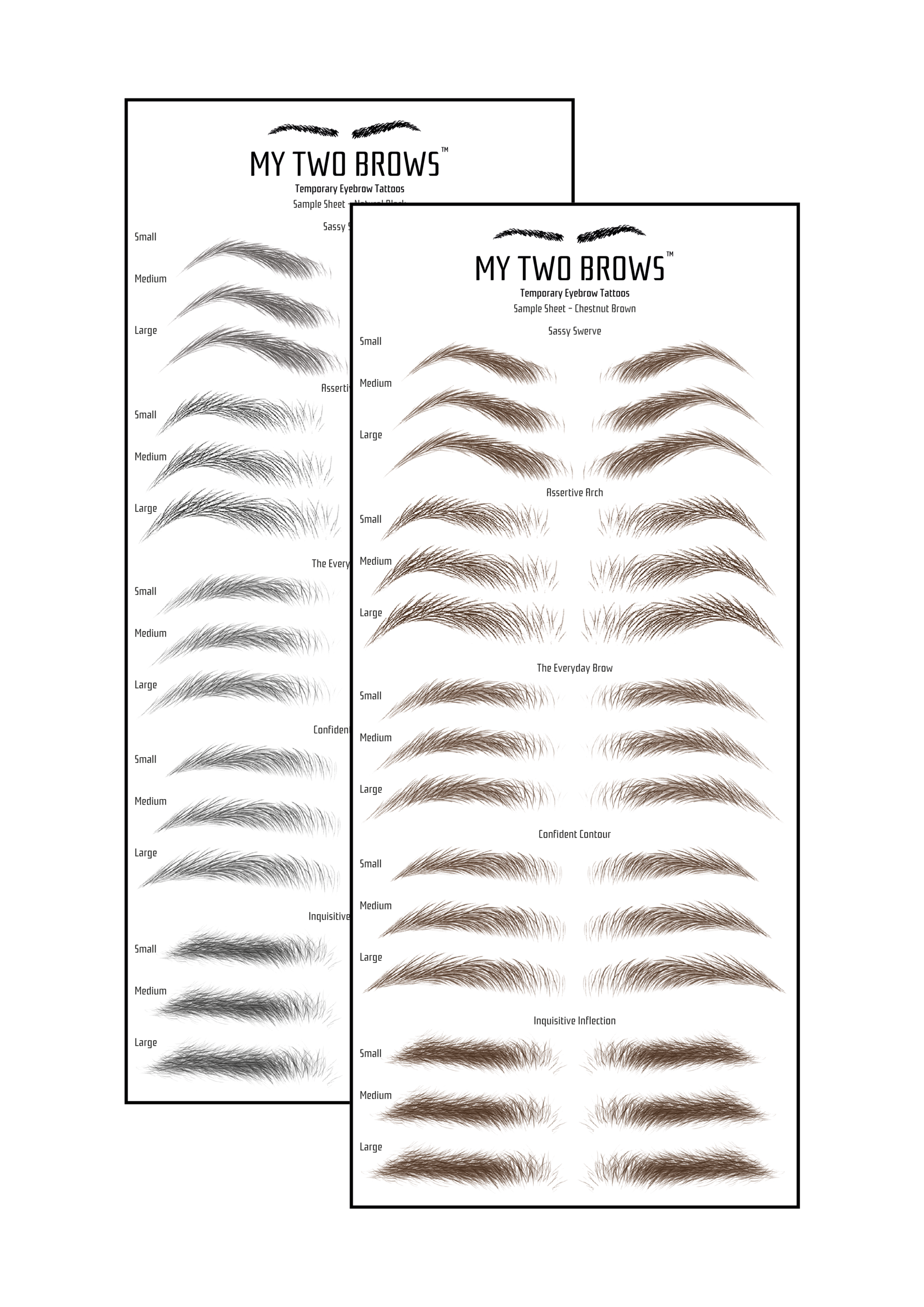 That’s right... As a FREE bonus I'll be giving another sample sheet, so that you have a total of 2 sheets in the sample pack (1 in each colour).  That means you'll have samples of all of the eyebrow styles AND colours we carry.