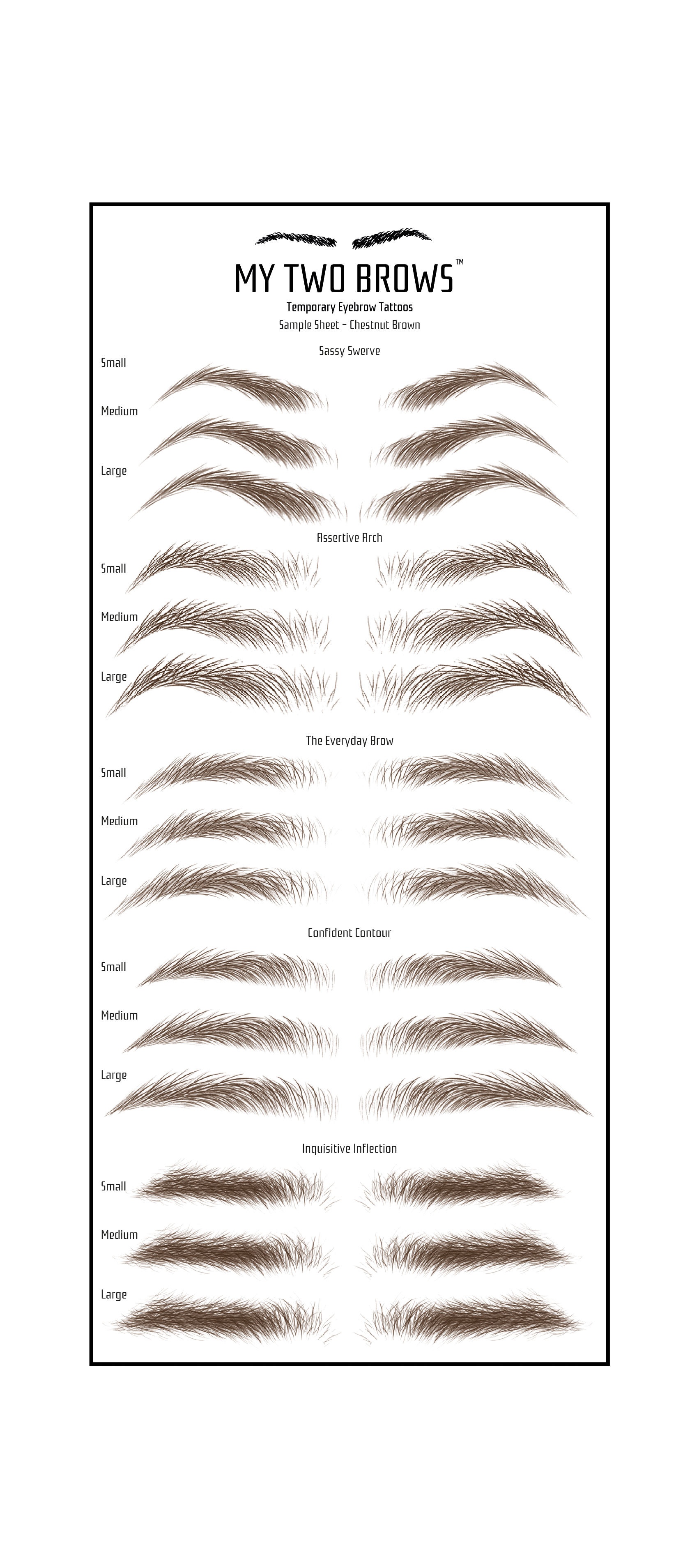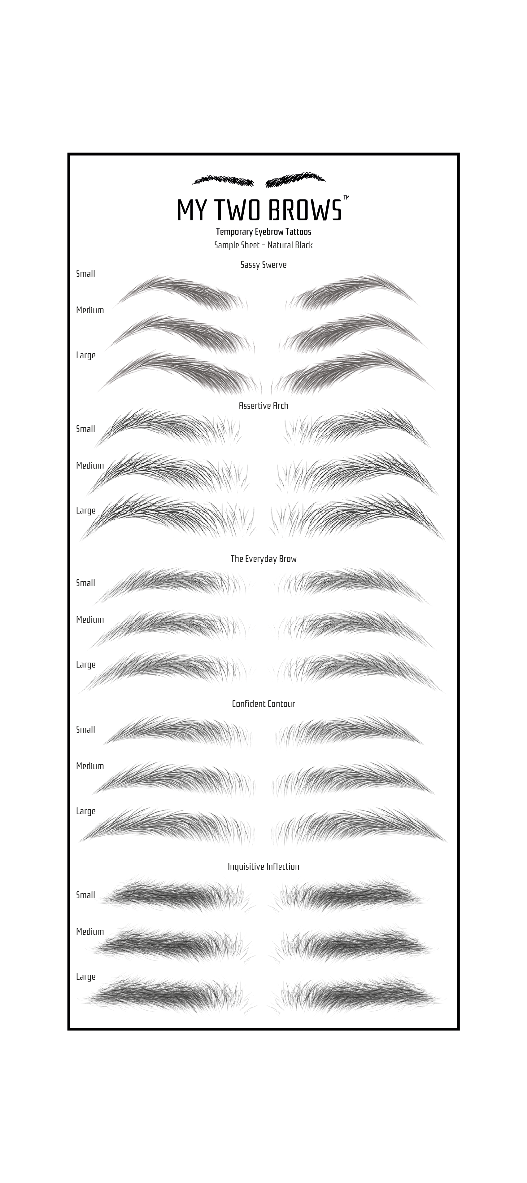 But if you would prefer to try all 10 of our sizes, in all 5 the styles, in both colours (100 different eyebrow sets total!) I also have an All Brows Combo pack for sale, if you choose to buy it, for a small fee once you put your details in below...